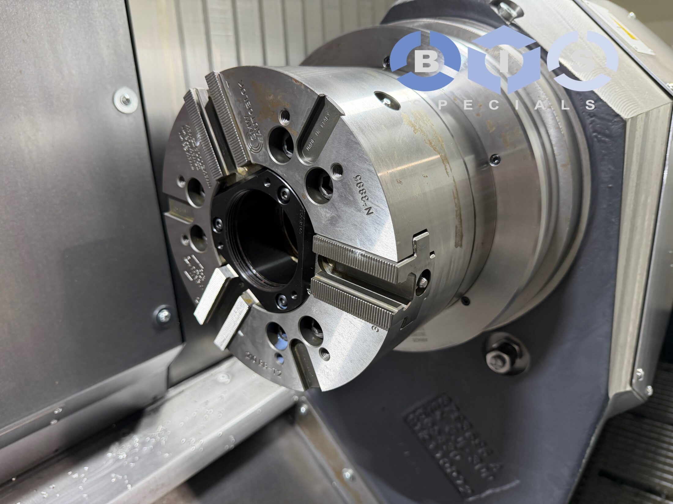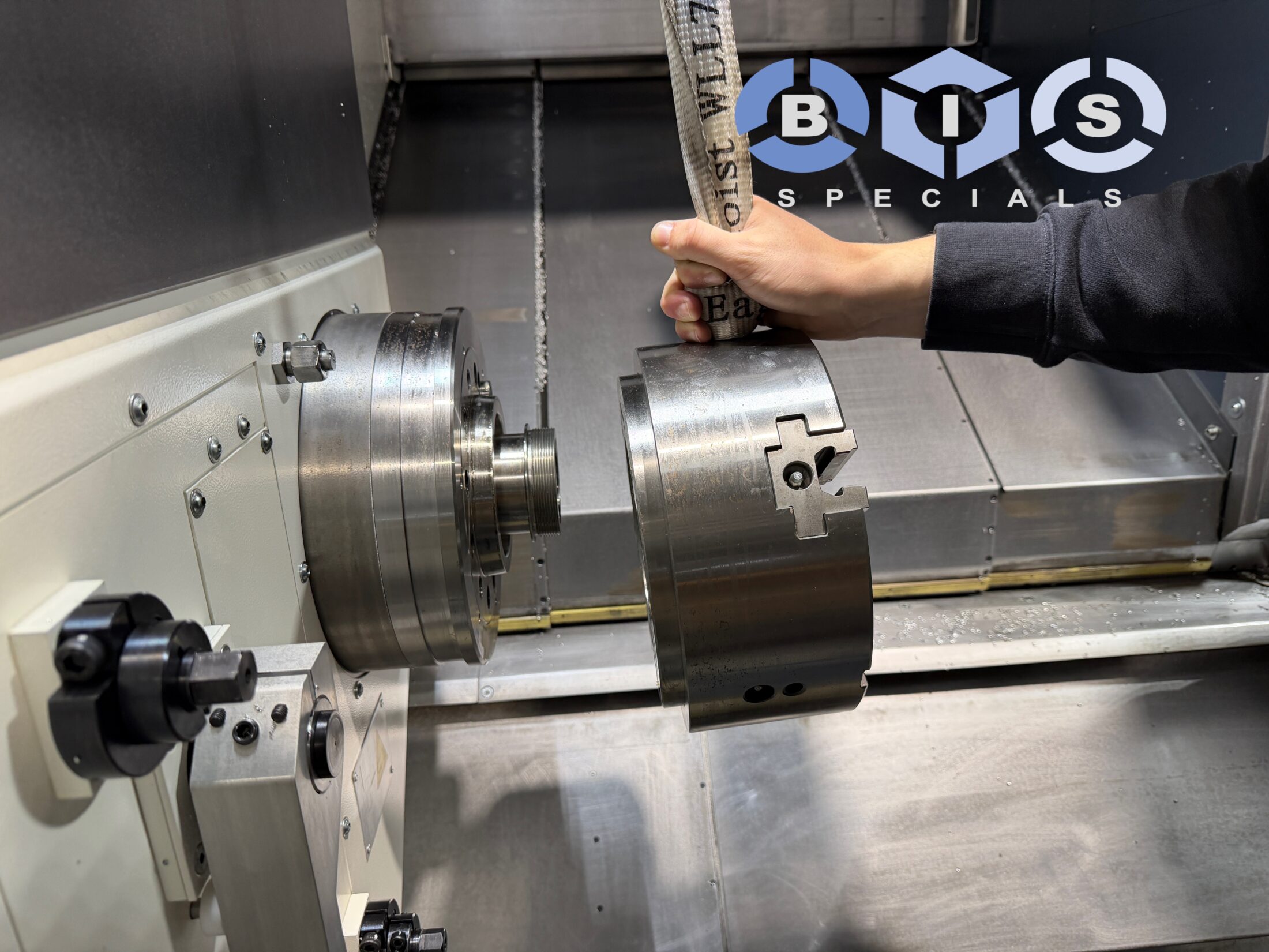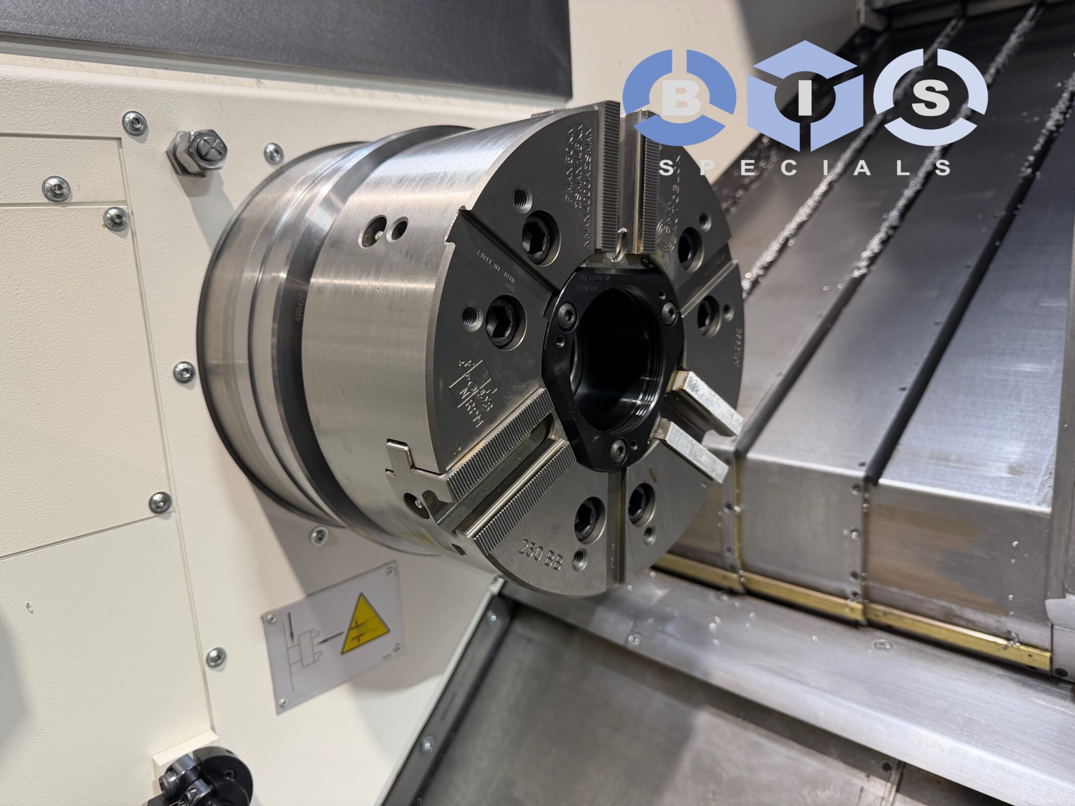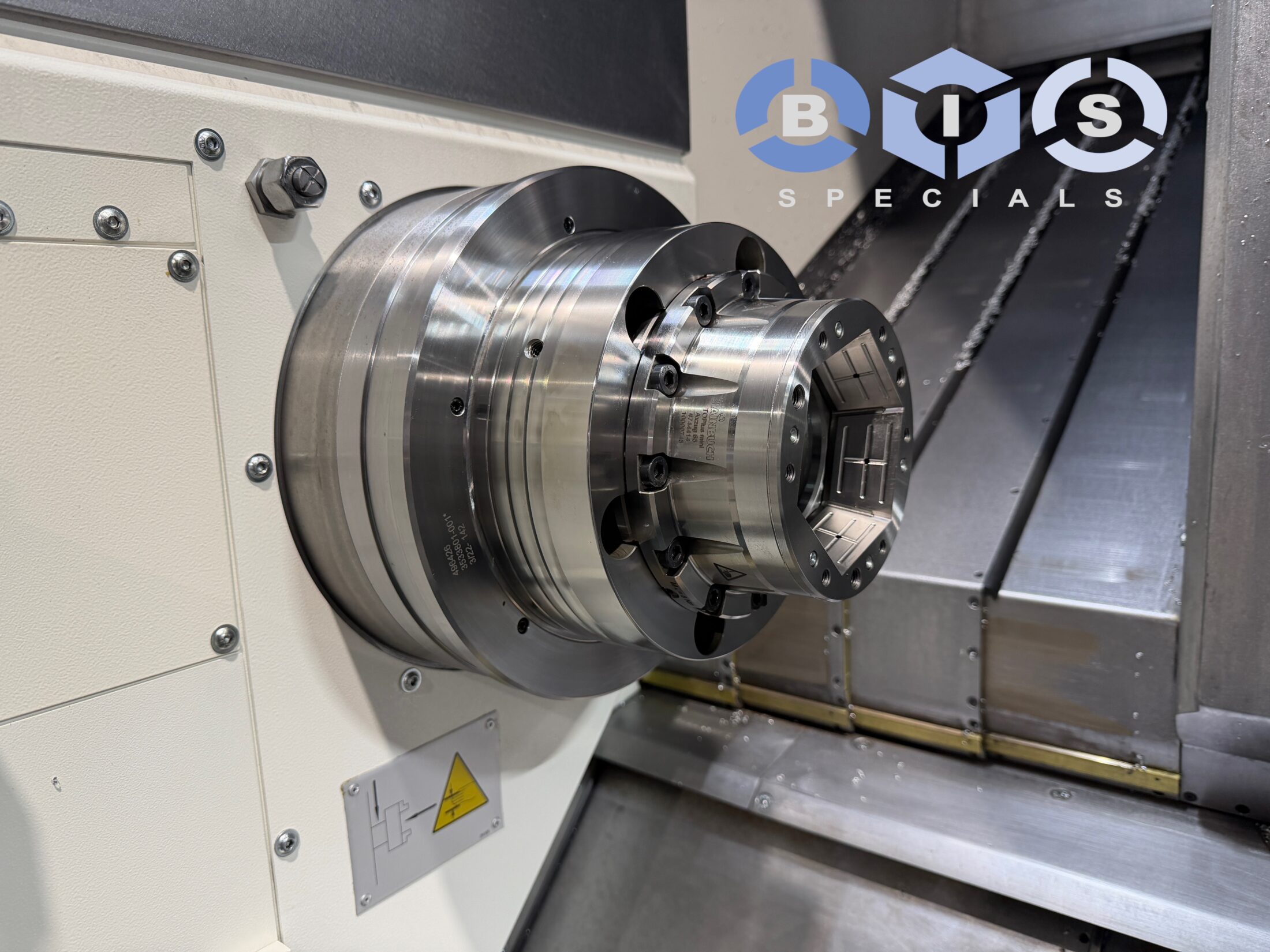 Deze keer zaten er SMW Autoblok klauwplaten met spitsvertanding gemonteerd. Prima keus, SMW Autoblok en SCHUNK zijn wel de BMW’s en Mercedessen op het gebied van klauwplaten. Deze klauwplaten had ik ook kunnen adviseren voor deze machine, alleen had ik de koppeling naar trekbuis anders gemaakt.