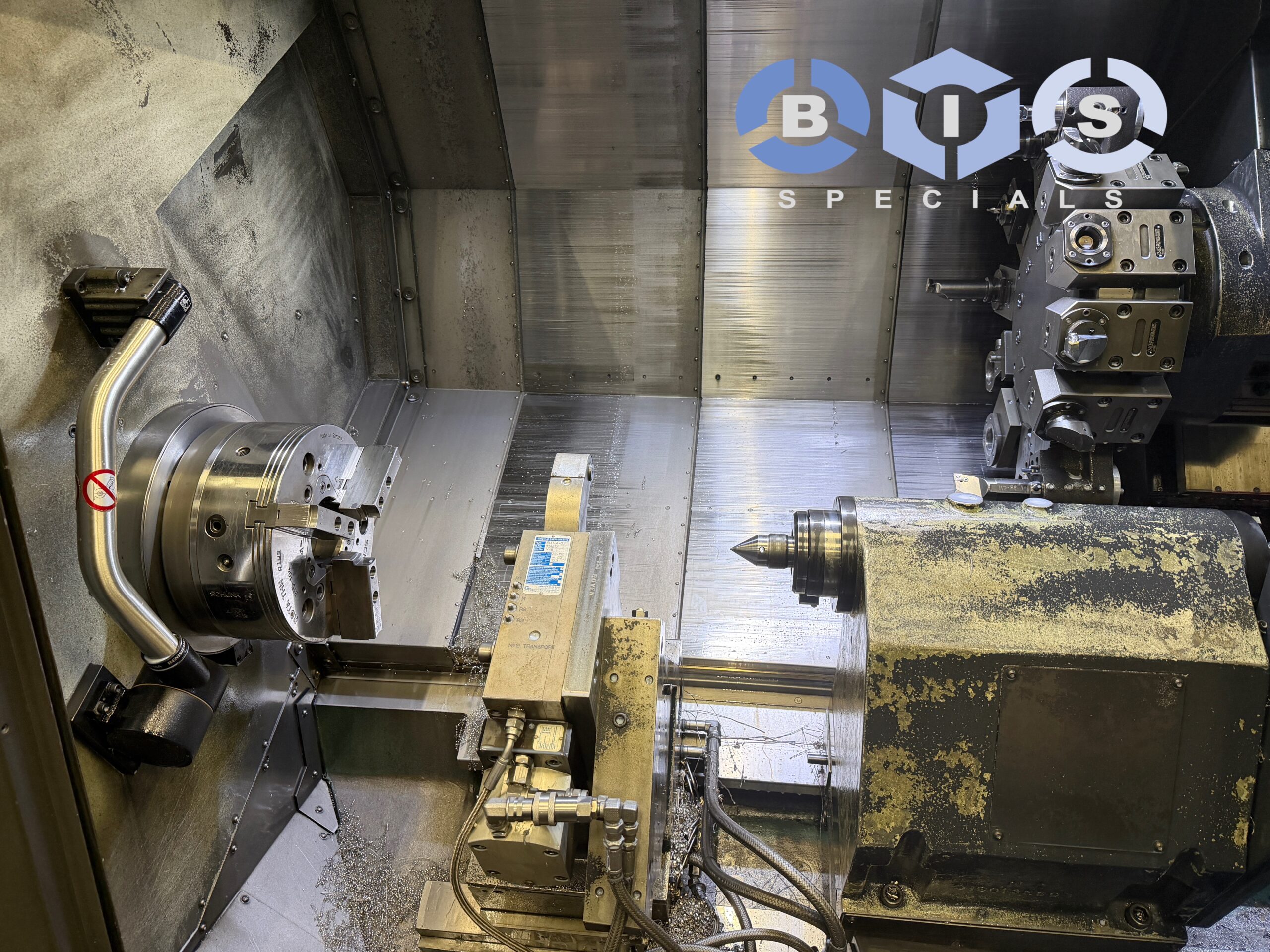 DOOSAN / DN Solutions 3100, doorlaat 104mm door de trekbuis met HAINBUCH TOP100 Axfix op de hoofdspil gemonteerd.