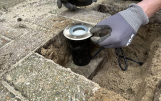 Grondspots aangelegd, staat niet alleen mooi, maar nu kunnen we ‘s-nachts de beelden van de camera beter zien.