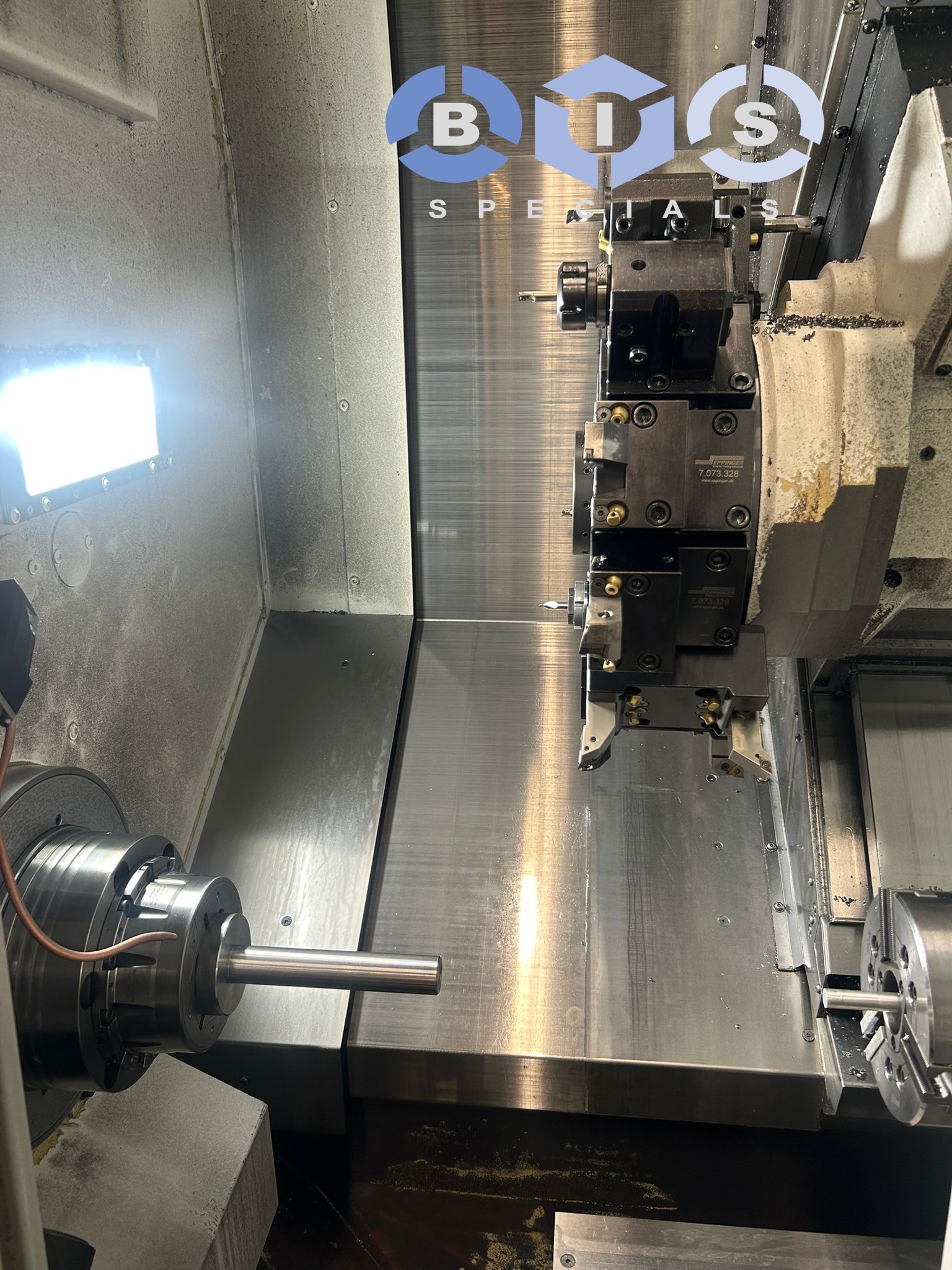 OKUMA GENOS L3000-e van twee HAINBUCH TOPlus 65 Axzug mini axfix spantanghouders.