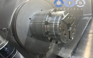 De standaard klauwplaat vervangen voor HAINBUCH TOPlus 65 Axzug mini en een Backenmodul (klauwplaat adaptie), deze laatste is binnen 20 sec. in de spantanghouder te monteren.