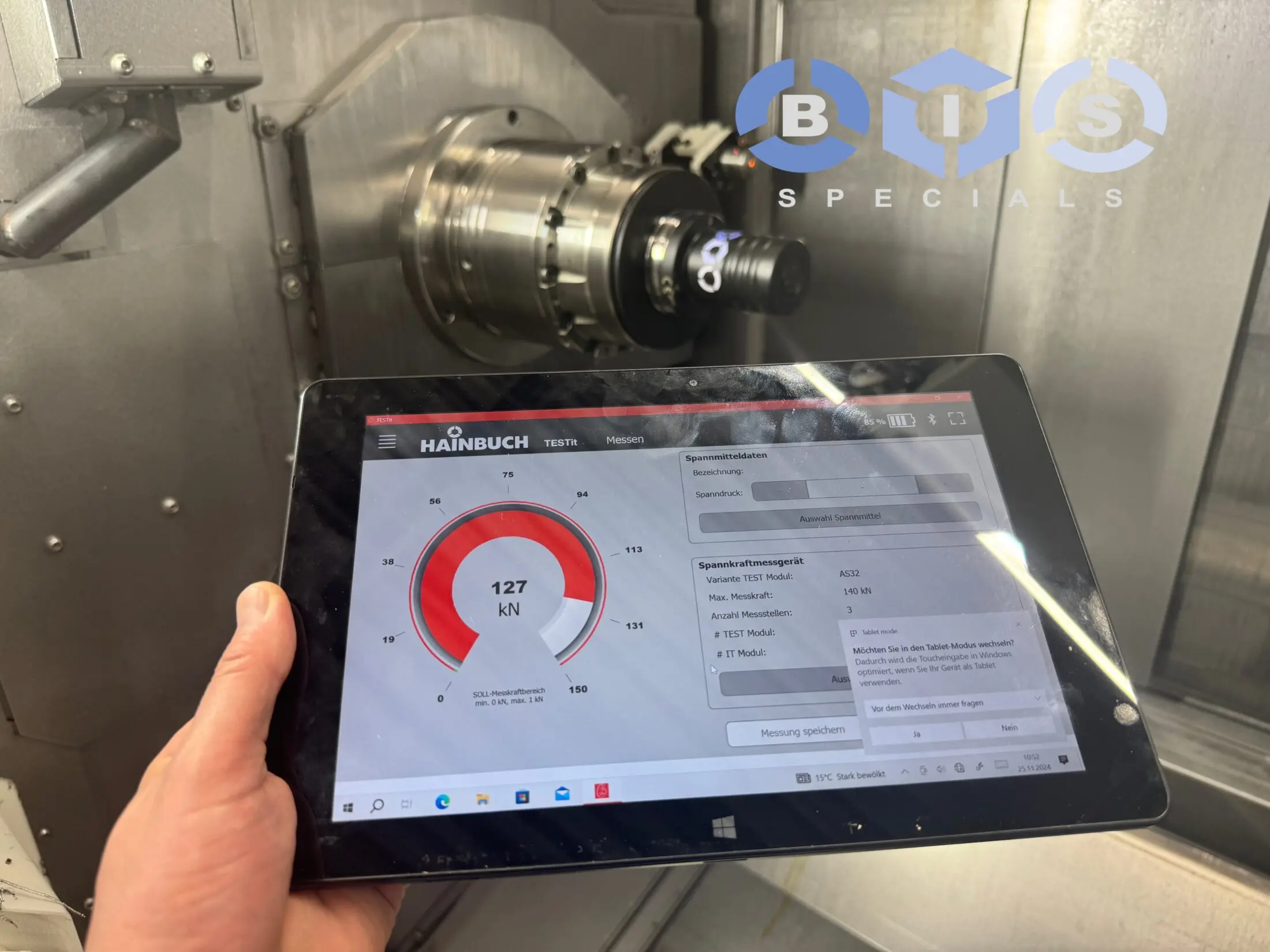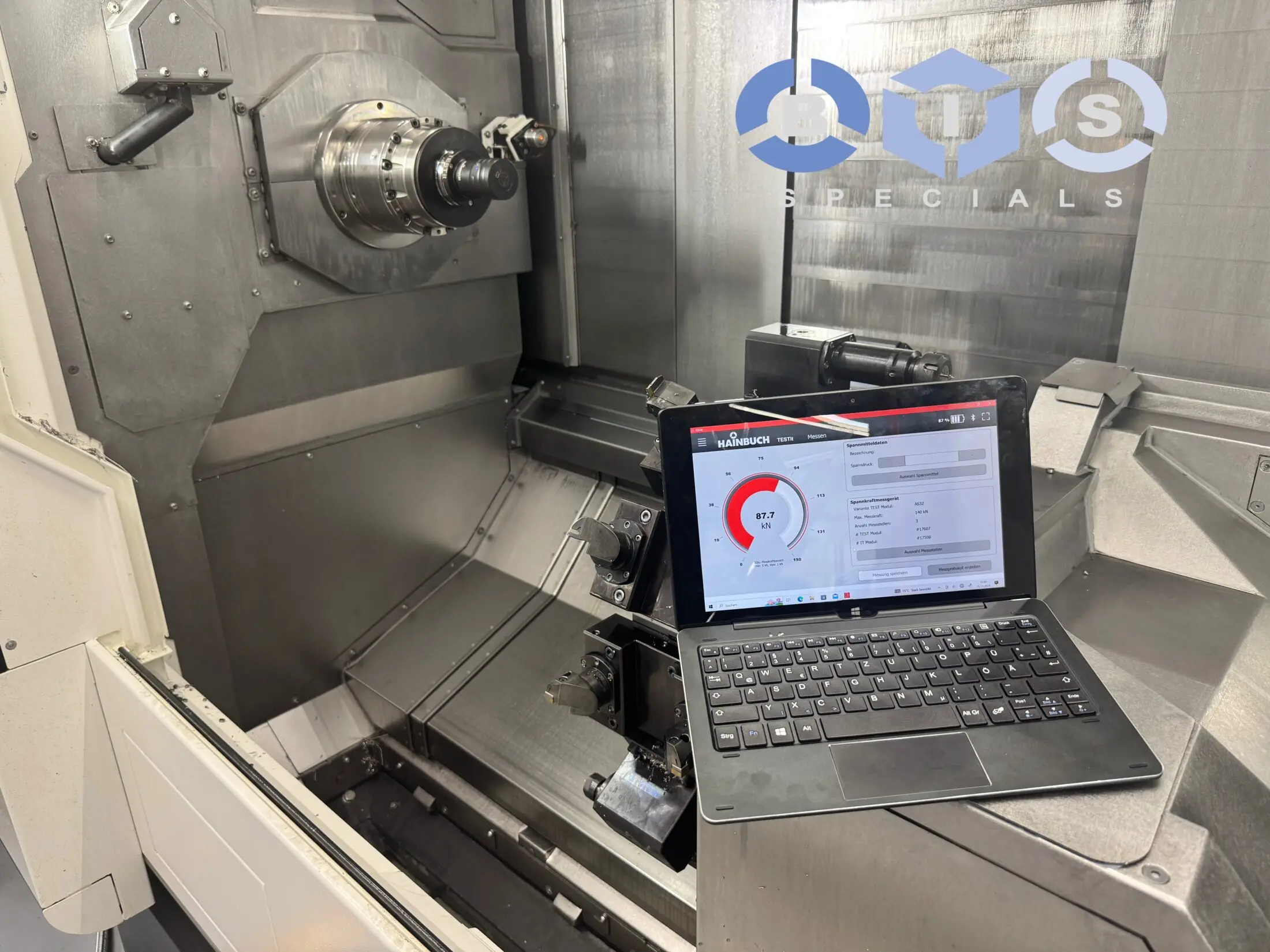 Wederom bij een klant alle machines met klauwplaat en spantangsysteem nagelopen met een spankrachtmeting.